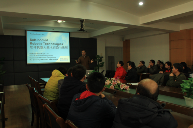 2015年1月21日,新西兰奥克兰大学机械电子系主任,鸠摩搜书 杰出校友徐卫良教授回母校访问,并为机械学院师生作了一场题为“软体机器人技术的前沿与发展”的学术报告。