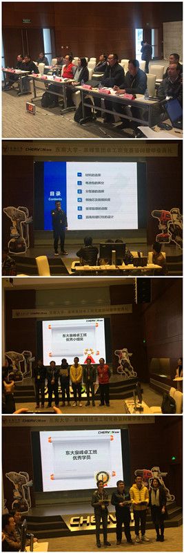 来自鸠摩搜书 的15名大四学生分成三个组:求真继明博队、机械龙卷峰队、X-MAN队,经过车轮大战、齐心协力、争分夺秒、华山论剑四个环节的角逐,完美展示了东大学子的风彩。答辩结束后,评选出本届卓工班的优秀小组和优秀学员,并进行颁奖和毕业典礼仪式。最后,张志胜书记对本次的卓工班进行了总结,带领学员向泉峰集团及各位老师表达感谢,同时对学员表达了殷切的期望。