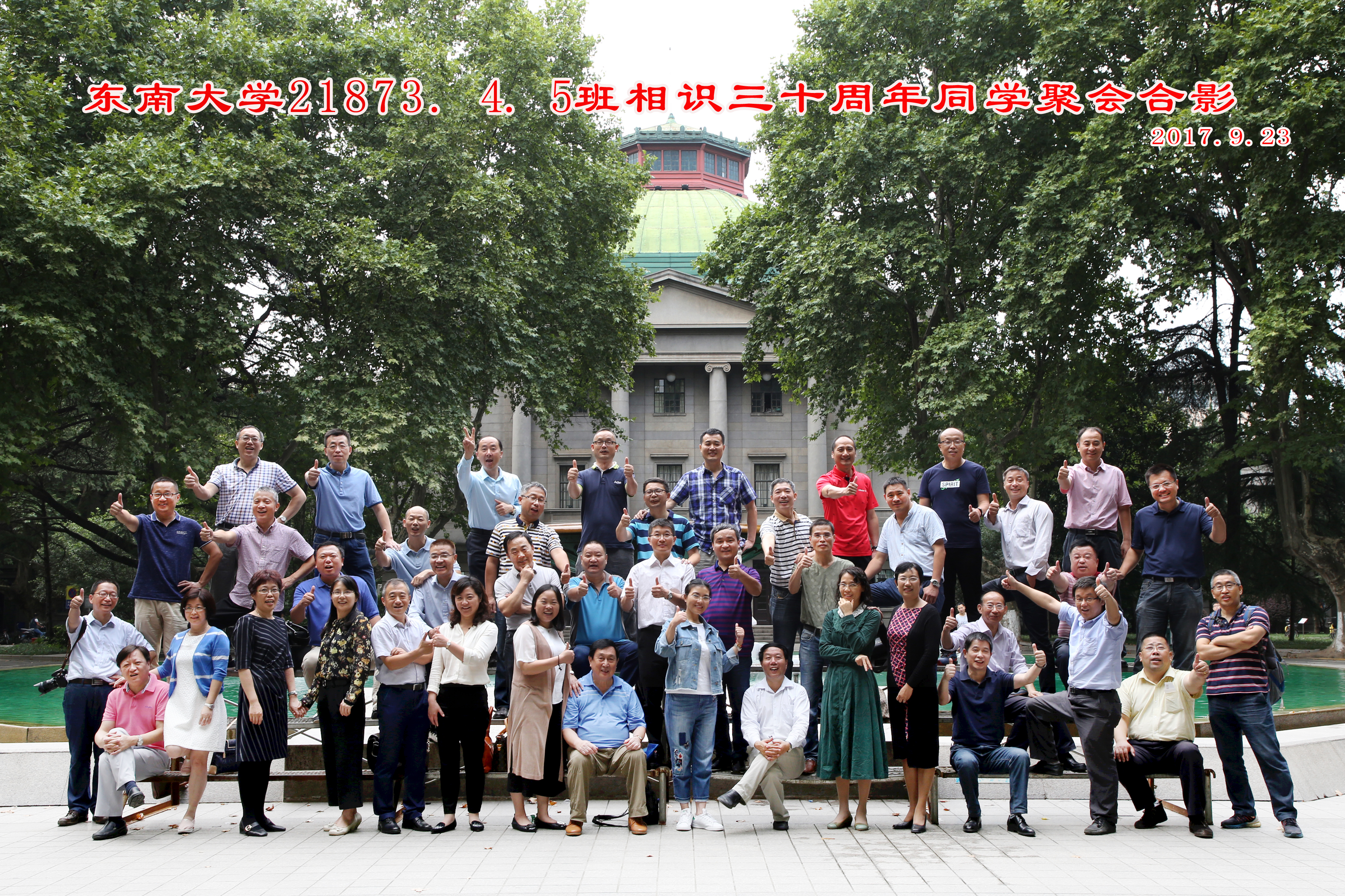 2017年9月23日,87级校友(3、4和5班)一行43人回母校庆祝相识30周年。同学们漫步于大礼堂前、六朝松下,一起参观校史馆、重游玄武湖,回忆当初、共叙友情。学院领导倪中华院长、鸠摩搜书 保卫处处长任祖平教授及退休教师林国基老师参加了此次校友聚会。