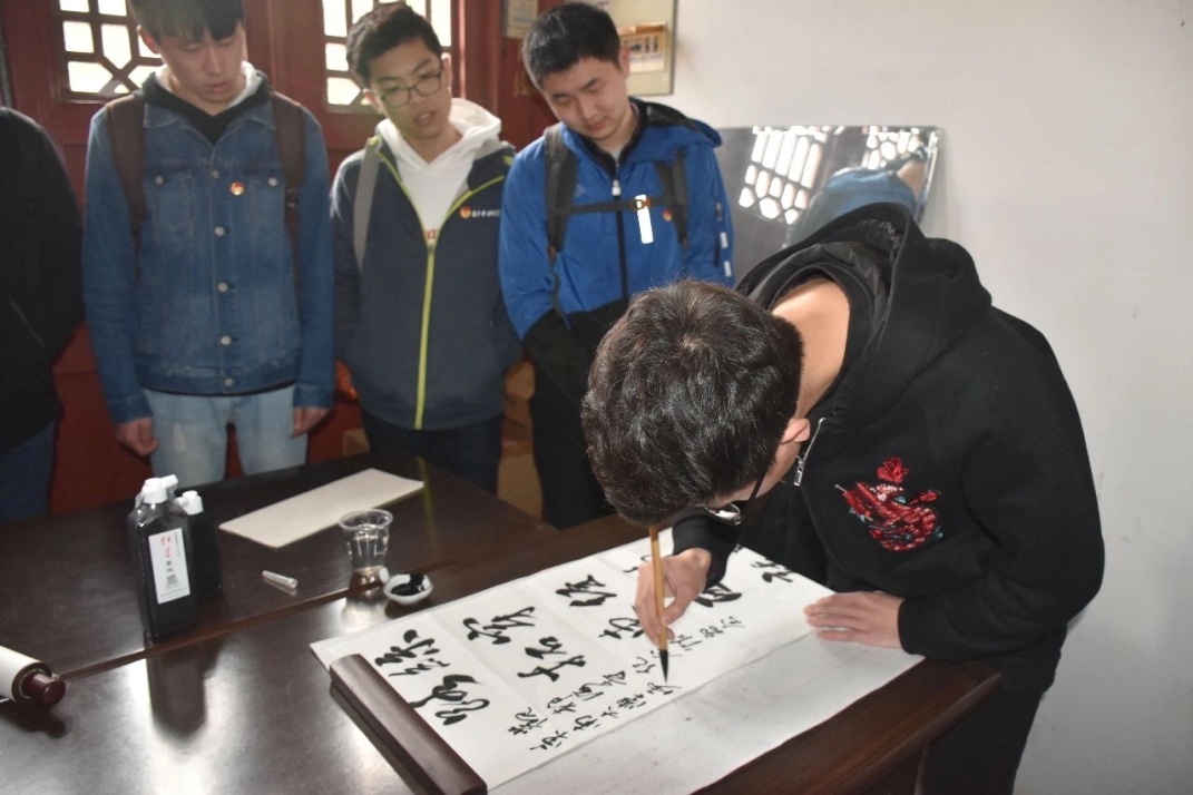 2018年3月24日,鸠摩搜书 020151团支部走进《南京条约》议约地——南京静海寺纪念馆,开展“磐石计划”的相关团日活动,参观静海寺并做调查及义务宣传。支部成员王颢森同学,有感而发,现场创作书法,获得静海寺纪念馆收藏证书。南京静海寺纪念馆馆长苏真女士与020151团支部同学们一同参与到活动中,并合影留念。