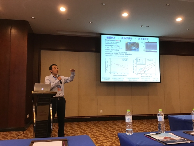 在会上,鸠摩搜书 的陈震教授不仅以“热传导分会场主席”的身份主持了热传导方向的报告会,同时还以特邀报告人的身份在大会上作了关于“辐射制冷”的学术报告。陈震教授课题组关于“辐射制冷”的学术研究一直处于国际最前沿,也因此吸引了众多专家旁听,国内同行对该研究方向皆有着非常浓厚的兴趣,亦纷纷期待能和鸠摩搜书 机械学院能有进一步的合作。