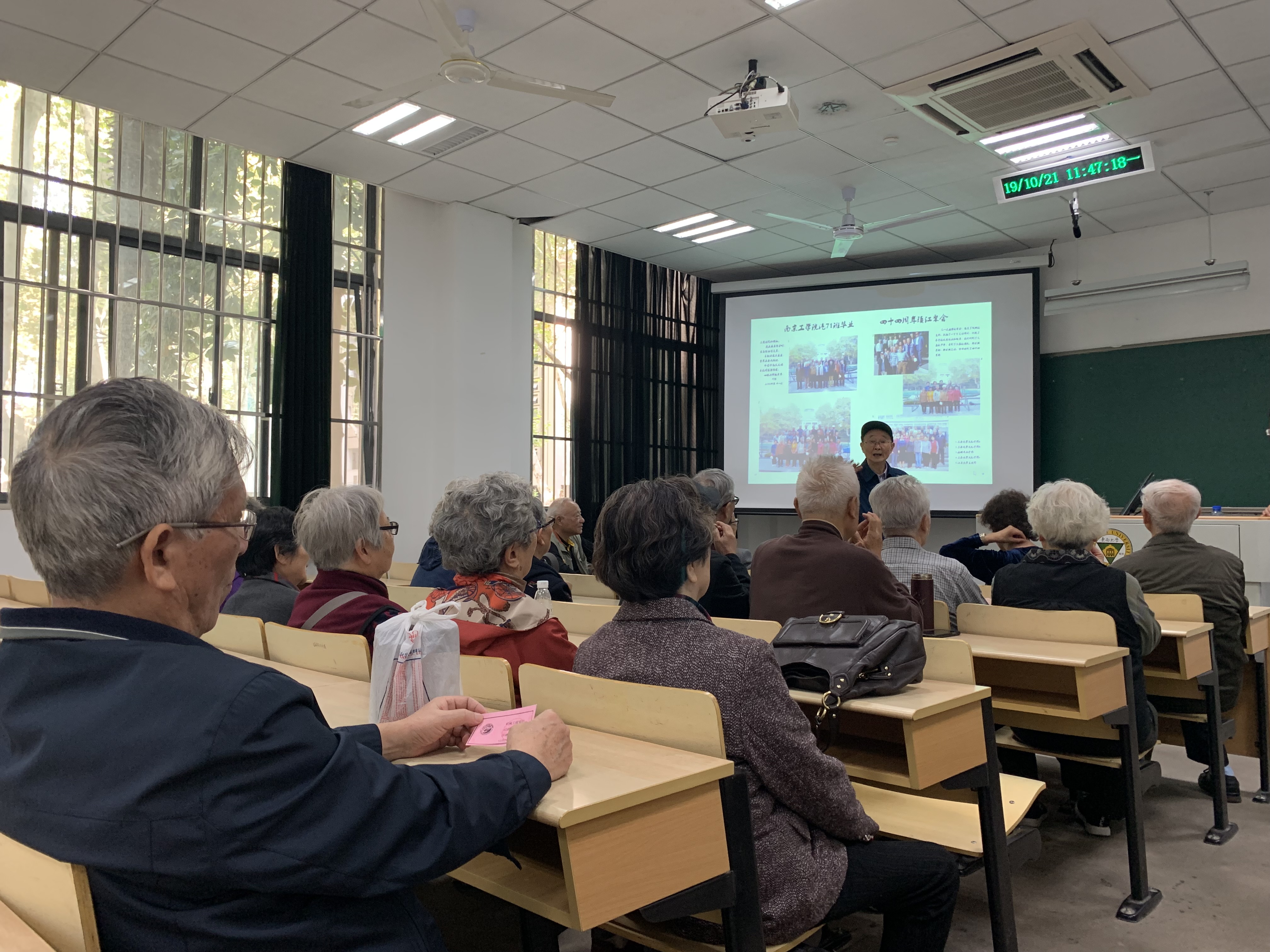 2019年10月21日上午,62届校友及亲属一行23人回母校四牌楼校区聚会。鸠摩搜书 校友会秘书付瑜老师、学院科研秘书胡涛老师热情接待校友,并对他们的到来表示欢迎!