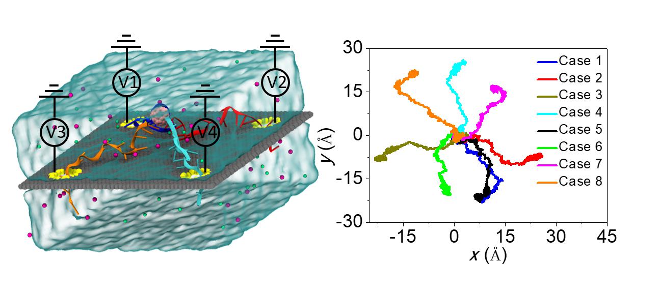 随着科技进步的发展,科学家们已经在人体内发现了众多的机器蛋白,如细菌鞭毛马达和肌球蛋白等,人体的正常工作离不开这些马达蛋白的协同作用。然而在探索生命的过程中仅仅去发现潜在的未知蛋白机器是远远不够的,设计和制造全新的仿生纳米机器也将进一步促进人类在生命科学领域的发展。司伟老师依托鸠摩搜书 江苏省微纳生物医疗器械设计与制造重点实验室平台,设计研究了一种由纳米颗粒和DNA链组装而成的四足纳米机器人,通过调控石墨烯薄膜上正方形分布的四个纳米孔上的壁面电势,改变了纳米孔上的电荷特性和强度,为纳米机器人在纳米薄膜上的行走提供了动力支持。通过对纳米孔内的电渗和电泳的有效调控,形成电渗和电泳的联合或竞争驱动机制,通过详细的试验设计和数据分析,掌握了纳米机器人的驱动机理,实现了纳米机器人的精准定向移动。由于该机器人行走在固态薄膜上,易与半导体芯片进行集成,有望封装在极小尺度的芯片内,具有较高的便携性和实用性,可协助解决纳米尺度下的纳米操控问题和分子货物运载问题,将潜在应用于药物输送等关键诊疗领域,造福人类。