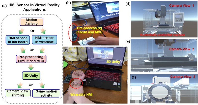 柔性可穿戴人机交互的运动检测是物联网和虚拟现实的有意义的研究领域。传统人机交互界面输出信号曲线意义单一,本研究通过机器学习增强实现高性能的人机界面传感,可广泛应用于态势感知、数控机床虚拟现实、以及游戏体验应用。研究发现机器学习的PCA+K-means提供更明显的聚类和更好的可视化,使人机界面器件干扰强、柔性可穿戴、兼容人体环境,其无需外部电源、快速制造、高效率、廉价成本、实时监控优点,该器件为自供电人机交互传感和虚拟现实活动中的潜在应用开辟新的可能性。