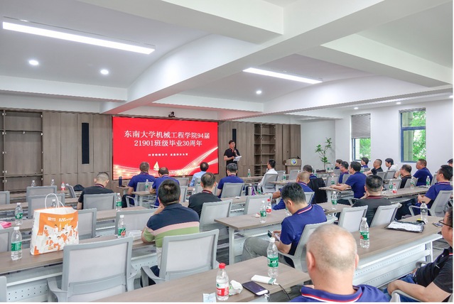 下午的班会在机械楼南高厅会议室进行,原校长助理任祖平,原成贤学院党委书记程明山,学院党委书记倪中华、院长费庆国、副院长刘晓军及30余名校友参加了班会。班会由21901班班长刘宏阳主持。