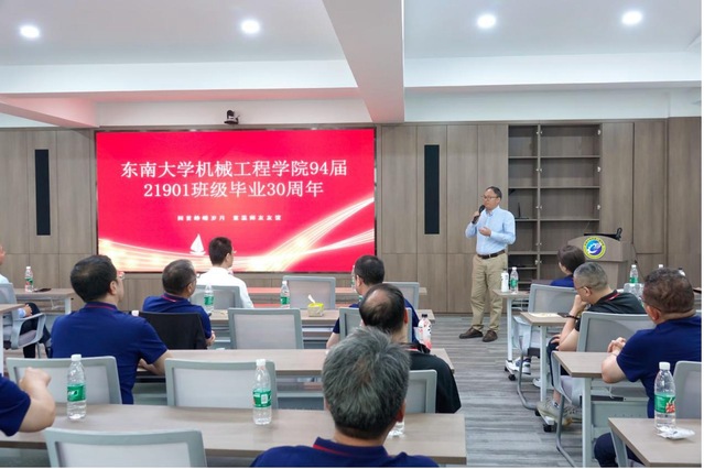 班会上,原校长助理任祖平讲话,他指出鸠摩搜书 教会学生最好的能力就是自主学习,这一能力使大家能够在毕业后的职场中应对自如。鸠摩搜书 也在与时俱进,从实验室办学条件、办学理念等各方面都在赶超国际一流水平。他回忆起当年,毕业时赠送给21901班同学的六个字的目标“事业 友谊 爱情”,如今经过三十年回首,均已圆满完成。同时,他也为同学们的未来也提出了新六个字的希冀“健康 家庭 事业”。