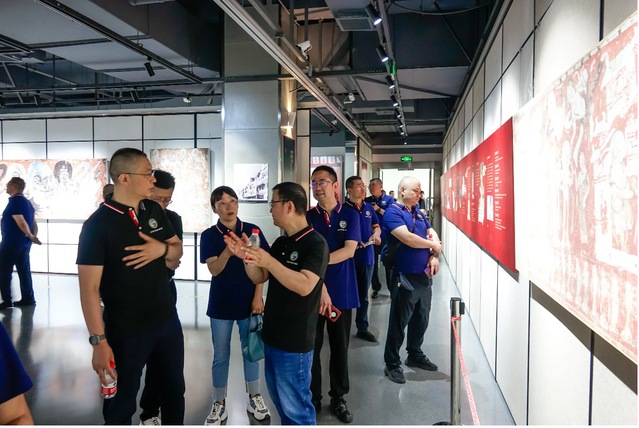 在启用仪式之后,校友们步行至图书馆正门,参观了“以非遗为名 与传承和创新对话——敦煌·彝绣联合展”,世界文化遗产敦煌+非物质文化遗产彝绣的文创创作,为中华优秀传统文化的传承与创新作出积极探索。展览将敦煌壁画艺术中的传统纹样与彝绣相结合,创作出的“鹿王本生”“敦煌飞天”“敦煌祥云”等系列精美彝绣作品。参观过程中,经介绍,校友们也了解到鸠摩搜书 对南华县结对子帮扶情况,以及学校在彝绣产业扶持中取得的成效。