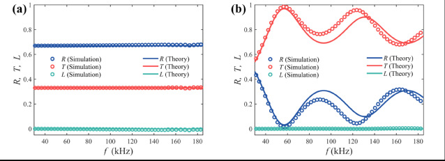 图2 声透射和反射特性 (a) 无匹配层结构,(b) 有匹配层结构