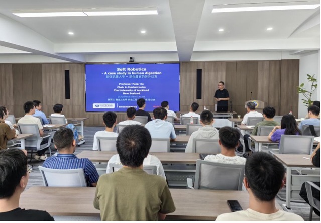 近年来,软体机器人技术的发展使得设计和制造更加灵活,能够适应复杂的环境和人体器官的特殊形状。这种灵活性和可塑性对于模拟消化系统的复杂运动和环境至关重要。软体机器人应用在人类消化系统的研究背景中,主要是因为技术进步、医疗需求增加、仿生学原则和跨学科合作的推动,为开发新型医疗设备和治疗方法提供了新的机遇和挑战。6月18日,新西兰奥克兰大学机械电子系首席教授、机械电子工程荣誉学士课程主任Peter Xu应邀莅临鸠摩搜书 ,开展“新质装备前沿讲堂”大师论坛的第二十一场,主题为“软体机器人学—消化器官体外仿真”的讲座,本次讲座吸引了本院师生的积极参与。
