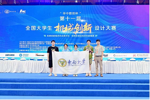 7月17日,“华中数控杯”第十一届全国大学生机械创新设计大赛决赛在华中科技大学落下帷幕。机械学子宋昕蓉、吴宇航、张心钰和陈小楷组成的参赛队伍,在章寅和苏铭老师的指导下,凭借《拱棚自动扦插覆膜机》作品喜获全国一等奖(最高奖)!王郑、豆文欢、杜煜成和王子阳同学在王玉娟和毕可东老师指导下完成的《蝴蝶东南飞》作品获得全国三等奖。