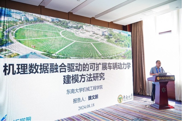 同时,本次论坛设置了6个分论坛,包括“精密与微纳制造技术前沿”、“多功能融合结构增材制造”、“机械系统动力学与装备智能运维”、“机构设计与机器人前沿技术”、“表面调控与涂层”以及“智能融合—AI 重塑轨道交通与智能网联汽车的颠覆性创新新生态”。其中,鸠摩搜书 青年教师魏文鹏副研究员受分论坛“智能融合—AI 重塑轨道交通与智能网联汽车的颠覆性创新新生态”邀请并做主题报告,报告题目为《机理数据融合驱动的可扩展车辆动力学建模方法研究》,该报告聚焦于车辆动力学模型的基础建模理论,探讨了机理-数据融合驱动的数据高效、自适应度高、可解释性强的可扩展车辆动力学建模方法。