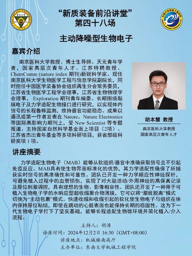 南京医科大学教授、博士生导师、天元青年学者,国家高层次青年人才、江苏特聘教授、ChemComm (nature index 期刊)新锐科学家。现任南京医科大学生物医学工程与信息学院副院长,同时担任中国医学装备协会组织再生分会常务委员,江苏省生物医学工程学会理事,江苏省生物物理学会理事, Exploration 期刊青年编委。长期围绕黏膜电子及力学适配生物接口进行研究,以实现体内信号的长程鲁棒监测,维持器官功能稳态。成果以通讯或第一作者发表在 Nature、Nature Electronics 等国际高影响力期刊上,受 New Scientist 等专题报道。主持国家自然科学基金面上项目(2项)、江苏省杰出青年基金等多项科研项目,获省部级科研奖项 1 项。