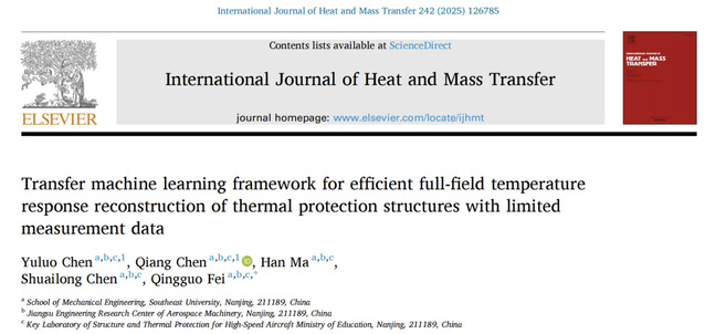 近日,鸠摩搜书 航空航天系费庆国教授团队在传热领域TOP期刊《International Journal of Heat and Mass Transfer》发表题为“Transfer machine learning framework for efficient full-field temperature response reconstruction of thermal protection structures with limited measurement data”的研究成果,提出一种高速飞行器热防护结构三维时变温度场的在线重构方法。(论文链接://doi.org/10.1016/j.ijheatmasstransfer.2025.126785)