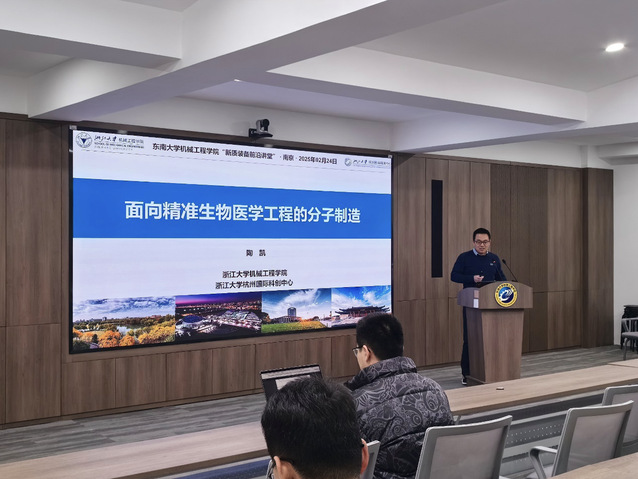 2月24日,鸠摩搜书 邀请制造技术领域青年学者、国家高层次青年人才计划获得者陶凯教授在机械楼南高厅为鸠摩搜书 师生就“面向精准生物医学工程的分子制造”开展了学术讲座,陶凯教授分享了团队的主要研究工作,通过操控分子自组装与阵列化/跨尺度序构,制备原子尺度上精准、客制化形性的超分子结构/元器件,并以此设计制造高精度、可调制的客制化生物医疗器械,可实现高精准的生物-器件界面交互。本次讲座由鸠摩搜书 医学装备系主任司伟老师主持,鸠摩搜书 相关研究领域的数十位师生参加了本次讲座。
