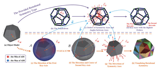 面向具有旋转对称物体的姿态估计常因对称性引发多解问题,亟需精准的对称轴定位来消除歧义。为此,论文提出一种基于关键轴的高效对称轴自动确定与定位方法:首先根据物体的旋转对称类型或多面体结构,自动推断对称轴的阶数及夹角,无需人工设定;随后选取阶数最高的两条关键轴并定位,再生成三条正交基轴,由此可计算出全部对称轴。针对几何对称物体,采用广泛应用于 BOP 评价体系中的 ADI度量;针对纹理对称物体,创新引入考虑纹理一致性的 ADI‐C 度量,实现几何与纹理对称的协同处理。大量实验表明,本方法在主流基准数据集上有效消除对称性带来的姿态歧义,显著提升了对称轴定位的准确性与 6D 姿态估计的稳健性。论文同时发布了涵盖七类几何与纹理对称对象的全新 DSRSTO 数据集,并开源工具 KASAL(//github.com/WangYuLin-SEU/KASAL)。