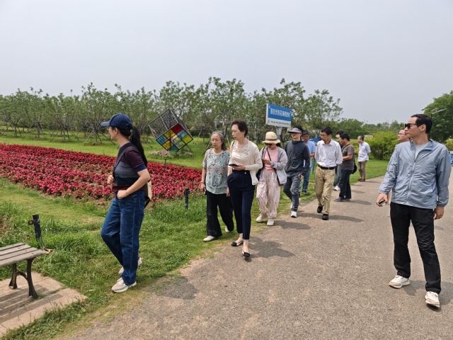 餐后,大家徒步花海,观赏七彩花田、月季花墙、薰衣草花圃等美丽景色,在充满花香甜甜的空气中,轻松地交流生活与工作趣事,分享鲜花培育心得,其乐融融。