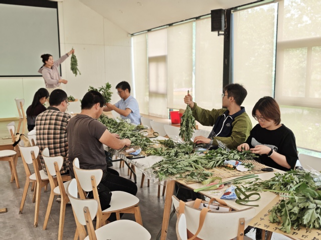 当日,教职工们进行了端午艾草挂件的制作。专业的花艺老师为大家讲解花艺挂件的制作方法和技巧,并在现场进行示范操作。在制作过程中,教职工们边听讲解边制作,相互交流、相互帮助,现场气氛热烈而融洽。