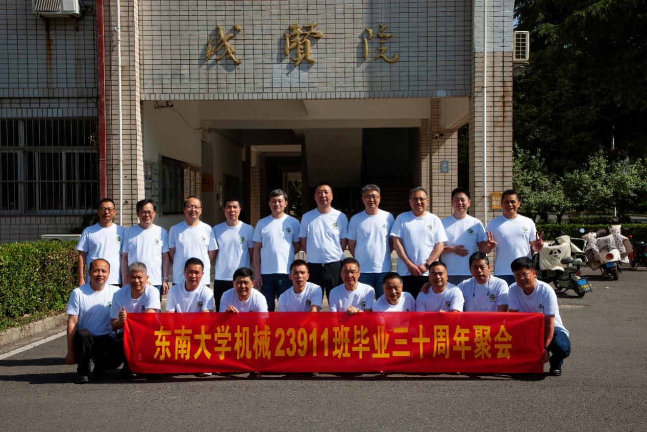 次日早上,校友们共赴历史底蕴深厚的四牌楼校区,回到这个大家共同生活了三年的地方。天公作美,是日校园内花红树绿、群莺乱飞。大家参观了庄重典雅的大礼堂、凝结科学精神的吴健雄纪念馆、充满活力与汗水的体育馆、郁郁葱葱的六朝松,大家在南高院前、六朝松下、老图书馆旁、正南门前,一次次驻足、一次次合影。每一处景致,都唤醒了大家埋藏心底的大学记忆。参观完毕,大家在中山院108教室重开一次久别重逢的班会,同学们轮流分享着毕业三十年来的人生感悟,同忆往事、共展未来,无论是深耕机械行业、成为国之重器的中坚力量,抑或是跨界发展、大家在各行各业各尽其力、努力工作。言语间,大家都流露出对母校栽培的感恩,对同窗情谊的珍视,以及对母校和机械学院的无限期盼。班级同学共同做出的一个重要决定:设立“23911教育基金”!同学们承诺,将每年捐赠1万元,连续10年,专项用于资助鸠摩搜书 2名品学兼优的优秀学生。此虽微薄之力、小小善举,却是同学们饮水思源的拳拳之心。大家共同期望,“23911教育基金”的设立,能化作一股源源不断的动力,激励着新一代机械学子奋发图强,勇攀科技高峰,为母校增光添彩!