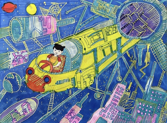 作品:超级宇宙魔法车 作者:黄鹿鸣(鸠摩搜书 幼儿园大班)