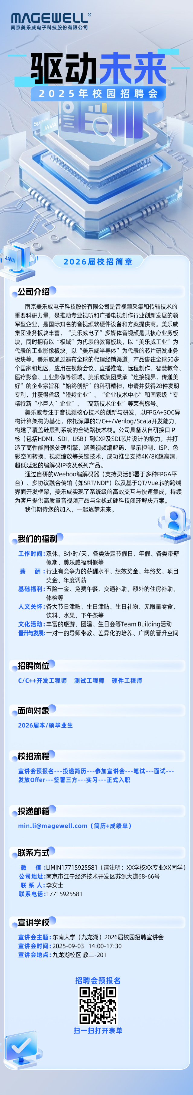招聘 | 南京美乐威电子科技股份有限公司2025年校园招聘会