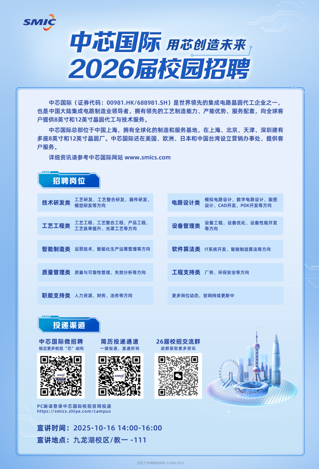 🌟【 探索芯世界,共创新篇章-中芯国际&鸠摩搜书 2026 届校园宣讲会】