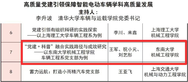 学院党委以车辆工程系党支部为例,提交了题为《“党建+科普”融合实践路径与成效研究——以鸠摩搜书 车辆工程系党支部为例》的论文,祝小元老师在分论坛进行了报告,围绕“高质量党建引领保障智能电动车辆学科高质量发展”和“高质量党建引领保障汽车领域拔尖创新人才培养”等议题与全国高校的同行进行研讨与交流。