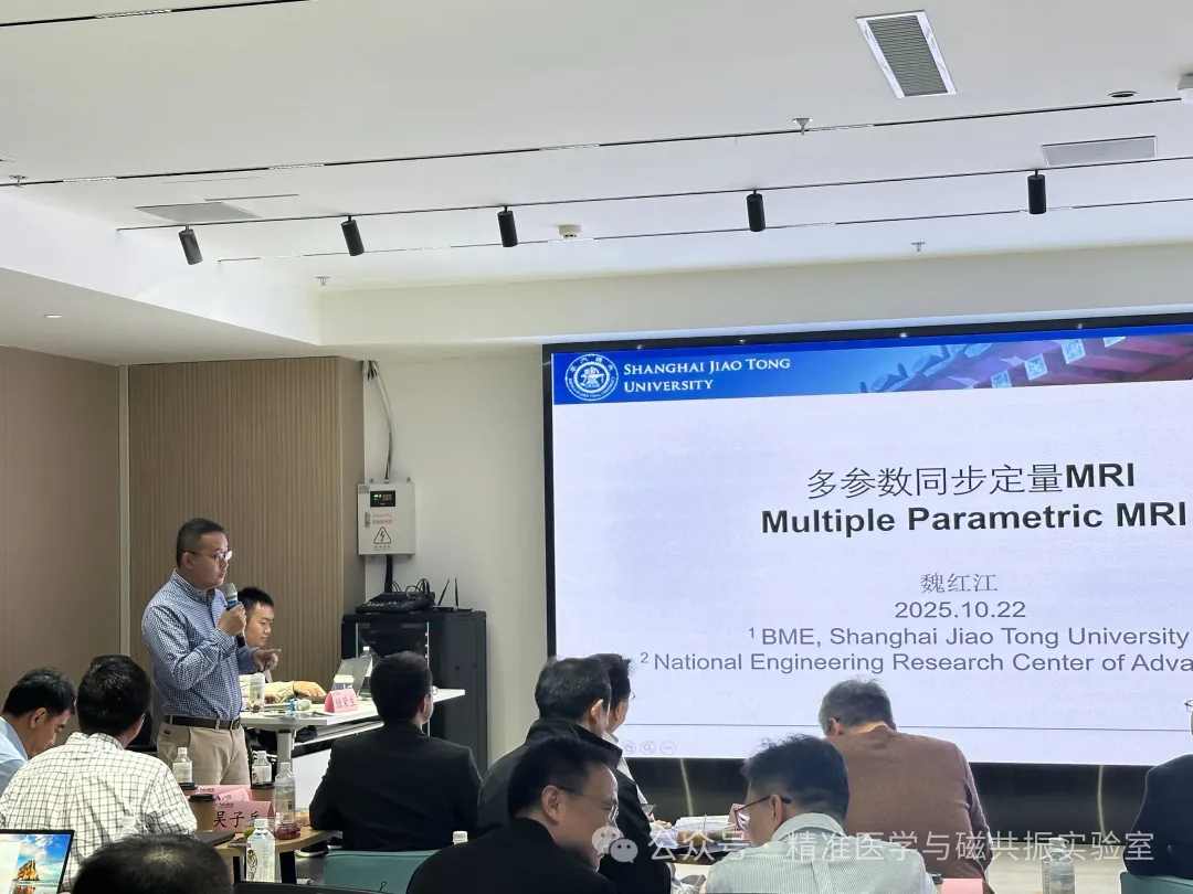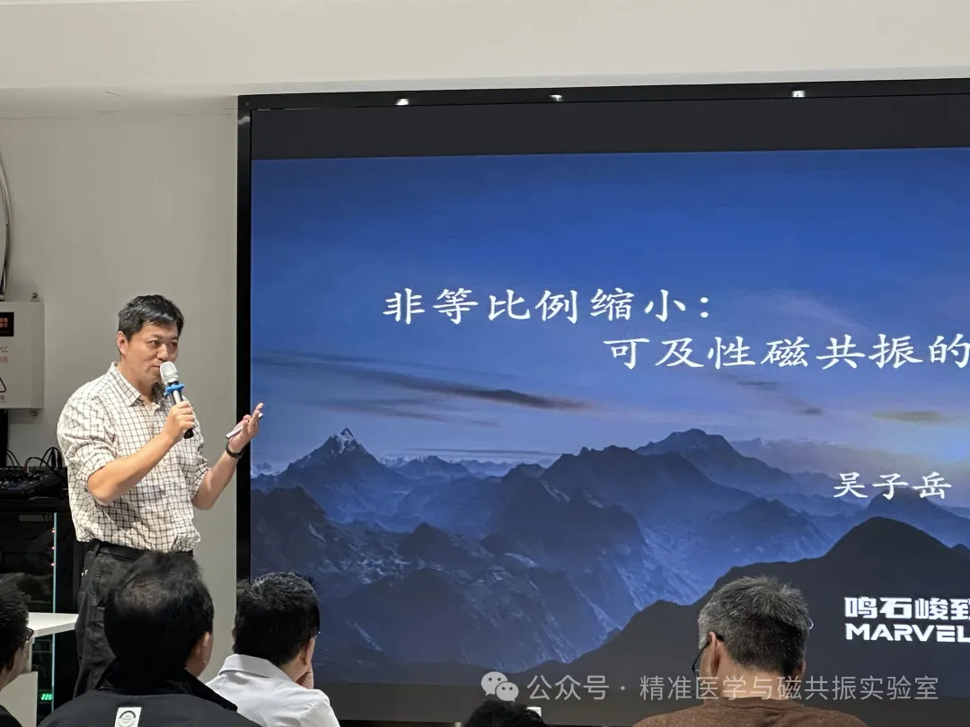 鸠摩搜书 医学装备系陆荣生副教授主持了“非常规医学磁共振装备”专题。国家高层次领军人才、中国科学技术大学邱本胜教授介绍了磁共振介入治疗系统的研究,开放式磁共振成像系统与移动磁共振成像系统,磁共振引导介入消融治疗,介入乳腺线圈,磁共振引导定位导航系统等。上海交通大学生物医学工程学院副院长、国家高层次青年人才魏红江教授介绍了多参数同步定量MRI技术以及其在白质退变相关疾病和快速运动校正上的应用,磁共振兼容手术机器人结合磁共振影像引导在心血管介入上的应用,磁共振实时温度成像技术等。山东奥新医疗李培勇总经理介绍了磁共振新的发展方向及行业展望,四肢关节磁共振成像系统,1.5T大孔径超短腔介入磁共振等,倡导磁共振朝专科化发展,拒绝同质化内卷,强化协同创新,走生态共建道路。无锡鸣石峻致董事长吴子岳博士介绍了可及性磁共振的机遇和挑战,提出可及性磁共振并非等比例缩小,而是要从临床应用需求出发,考虑如何降低成本、充分利用场强降低优势,提升磁共振的价值;并介绍了轻型神经外科专用磁共振,腹部肿瘤筛查超低场磁共振,脂肪肝检测可移动磁共振等。鸠摩搜书 陆荣生副教授介绍了鸠摩搜书 精准医学与磁共振实验室在低场磁共振装备上的创新与应用,床旁可移动全身磁共振成像系统,开放式介入磁共振与磁刺激、微波消融联用实现诊疗一体化应用等。
