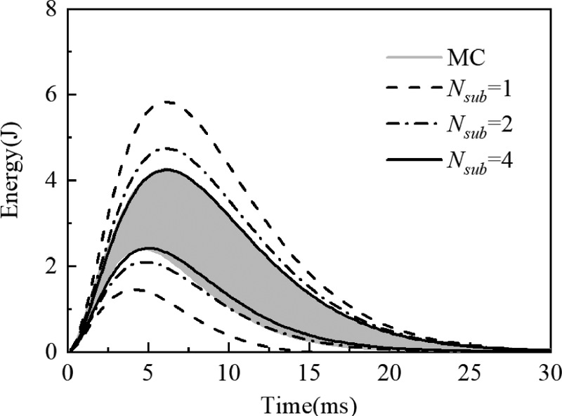 The transient response analysis is important for the design and evaluation of uncertain engineering systems under impact excitations. In this paper, statistical energy analysis (SEA) is developed to evaluate the high-frequency transient energy response of two-subsystem models considering interval uncertainties. Affine arithmetic (AA) and a subinterval technique are introduced into SEA to improve the computational accuracy. Numerical simulations on a coupled-plate and a plate-cavity system considering interval uncertainties are performed. The analysis precision of the proposed approach is validated by Monte Carlo (MC) method. The results show that the analysis precision of the proposed method decreases with the increasing uncertainty level of parameters. The computational accuracy of the proposed method can be significantly improved by employing AA and subinterval technique.