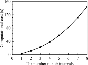 The computational cost for SIPWBM with different sub-interval numbers