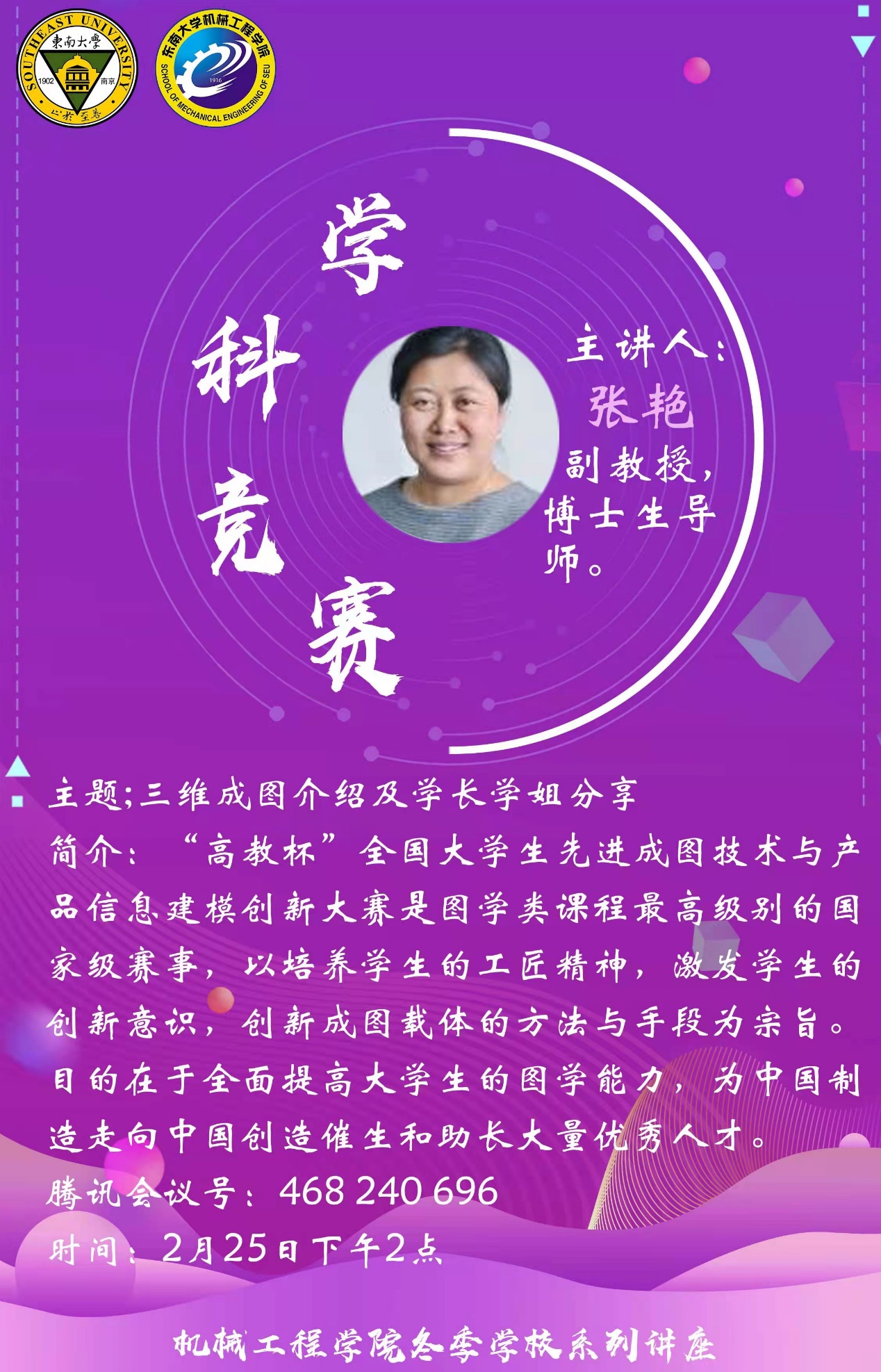 2月25日下午,学科竞赛讲座开讲,张燕老师、陈大林老师和周鹤翔同学对有关“高教杯”全国大学生先进成图技术与产品信息建模创新大赛进行了介绍。