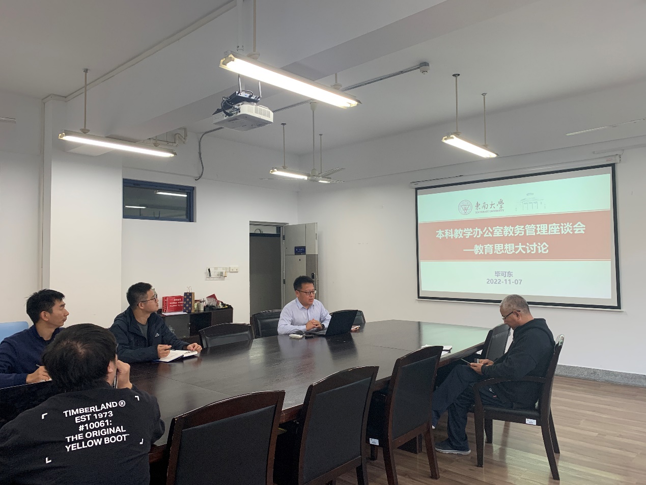 为提升学院教务管理水平和教学管理质量,2022年11月7日下午,鸠摩搜书 本科教学办公室在机械楼第一会议室召开了教育思想大讨论暨教务管理座谈会,学院教学办公室全体成员参加,会议由毕可东副院长主持。