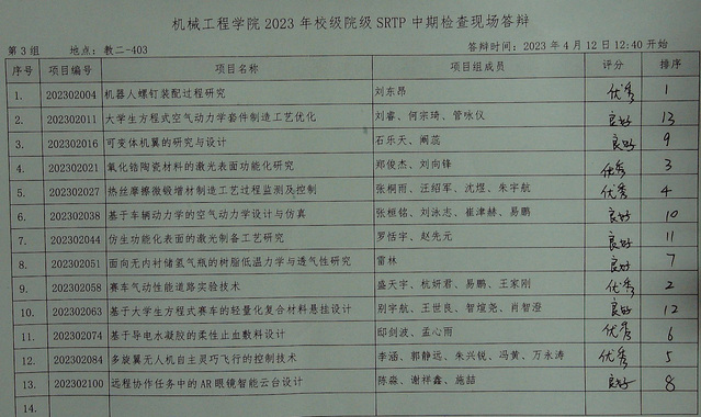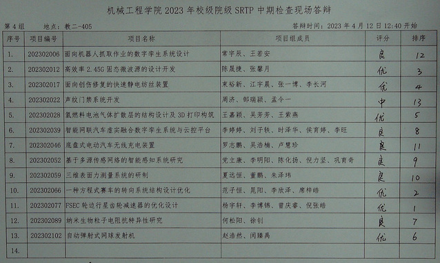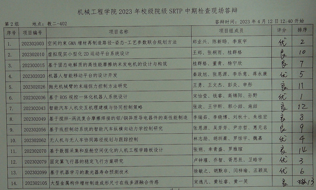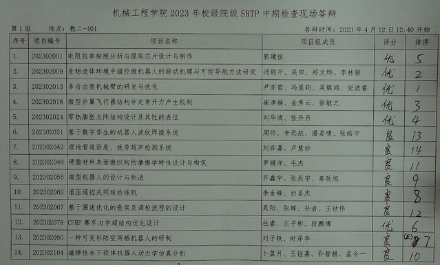 鸠摩搜书 2023年校级、院级SRTP项目中期检查答辩于2023年4月12日12:30至16:00在本科教学楼进行。现将结果公示如下。