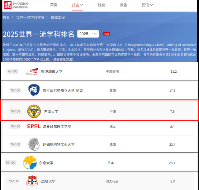 近日,鸠摩搜书 机械工程学科在国际权威排名中实现重要突破:在2025年度US News全球最佳大学机械工程学科排名中位列第15,并在软科(ARWU)2025“世界一流学科排名”中跃居全球76-100区间。这标志着鸠摩搜书 机械工程学科已稳步迈入全球一流学科阵营,与香港城市大学、东京大学、悉尼大学、洛桑联邦理工学院等世界一流高校的机械工程学科位列同一梯队。